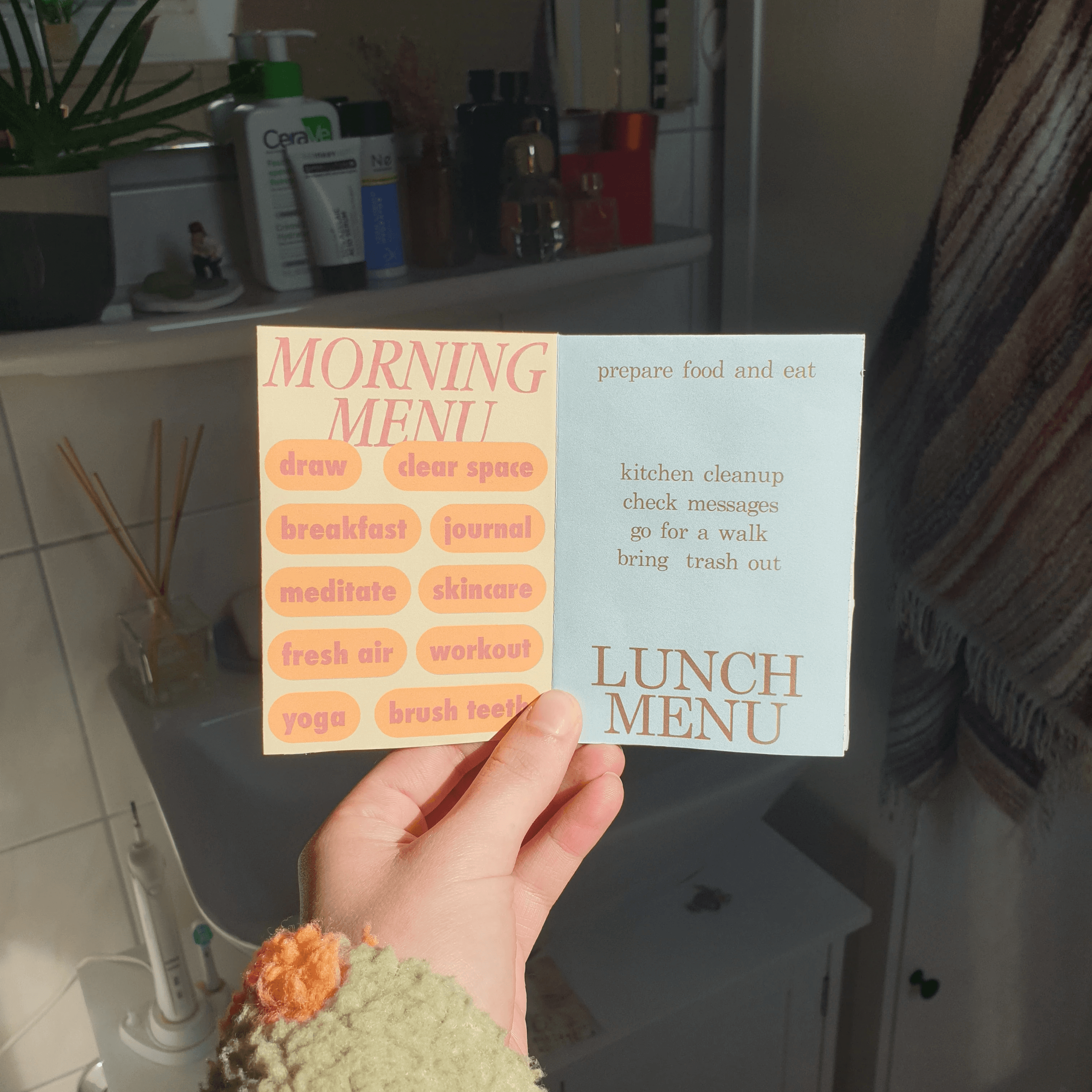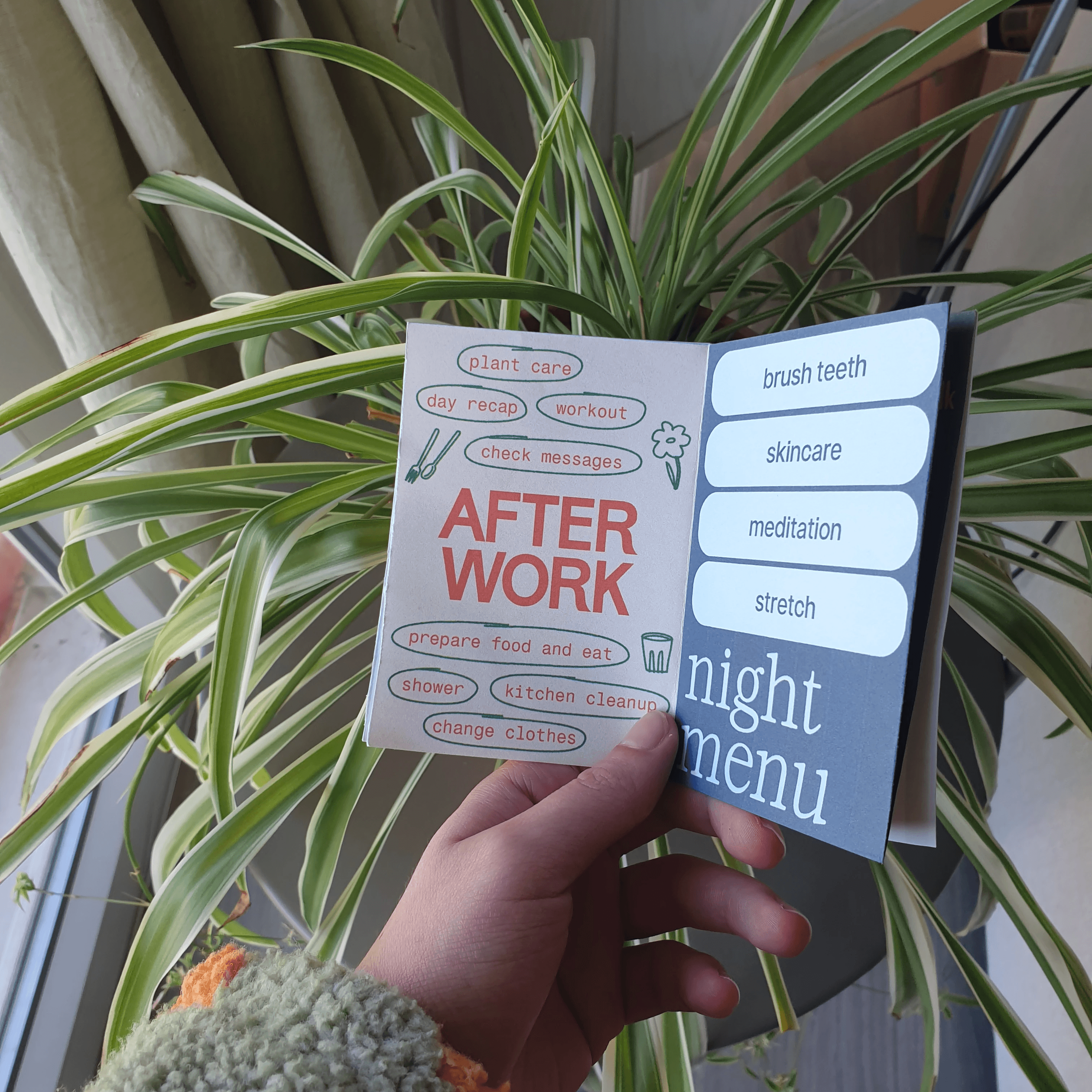 I called it the "Routines and rituals menu". I used the word menu because the intention is for it to give me options, though of course there still are non-negotiables, like eating, sleeping and basic hygiene, but there's still flexibility.