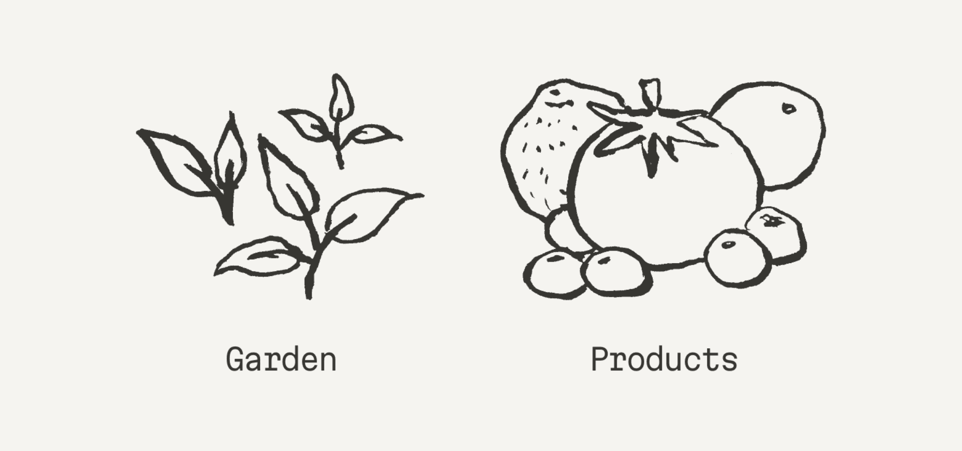 I first redrew the products and garden illustrations. A bunch of fruits would now represent the products. And I wanted the garden to be better represented, so I drew some plants that start to grow.